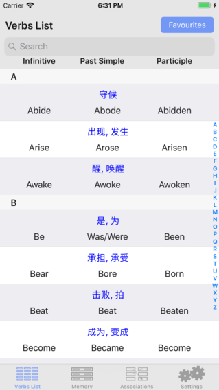iVerbs - 用于快速搜索和查看英语不规则动词的应用程序。